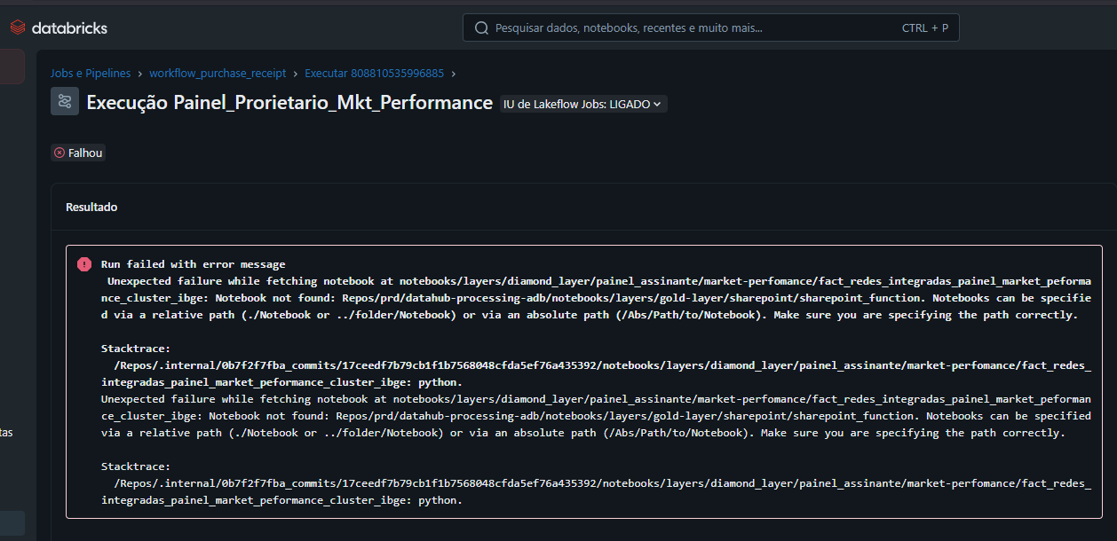 A ações nesses casos é verificar o erro e acionar a equipe de dados no canal #time-suporte-dados.